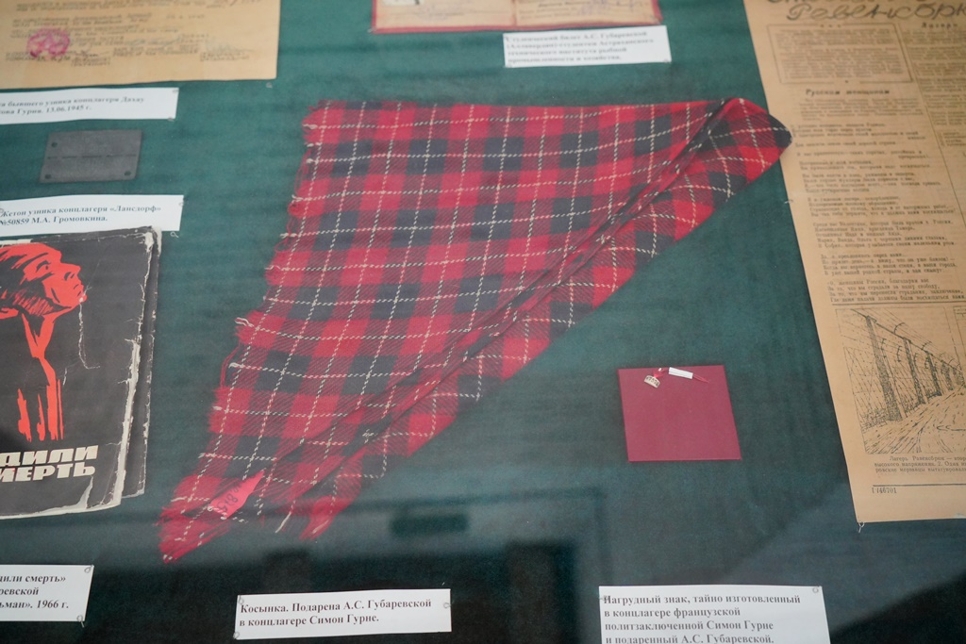 Заведующая Музеем боевой славы Екатерина Щеглова сообщила, что в фондах Астраханского музея-заповедника хранятся личные вещи, принадлежащие узникам концлагерей Дохау, Бухенвальда, Освенцима из коллекции семей Никитенко, Головачевых, Полянских, Остринских, Губаревских и других.
