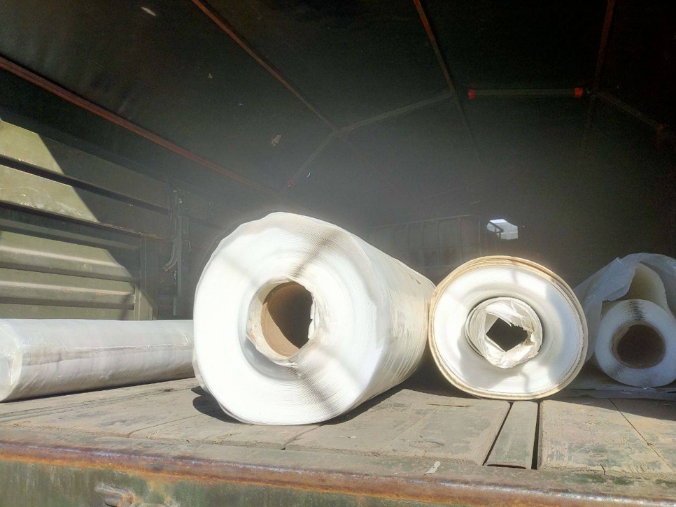 Перед отправкой груз был заранее приготовлен к транспортировке. Сегодня необходимые для организации мест расположений материалы, такие как рулоны линолеума и плёнки, были погружены в грузовик и отправлены в места расположения воинский соединений.