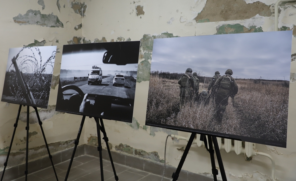 Связующим звеном экспозиции стали 30 фотографий, созданные автором в период с 2016 по 2025 годы в зонах войны в Донбассе и специальной военной операции. На фотографиях показана трагедия народа Донбасса, воюющего за право вернуться на Родину. На снимках запечатлены военнослужащие, беженцы, дети, военная техника, разрушенные городские постройки.