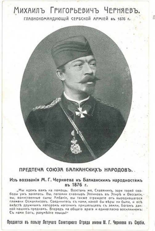 Сербия объявила Турции войну, но силы были явно не равны. Сербский князь Милан Обренович, чтобы побыстрее склонить на свою сторону Россию, предложил Михаилу Черняеву возглавить сербскую армию. Но как раз такого власть в России совершенно не хотела; Черняеву в паспорте для выезда за границу отказали. Однако, минуя Петербург и пользуясь старыми связями, генерал получил его в канцелярии московского генерал-губернатора. Действуя на свой страх и риск, он фактически нелегально покинул Россию и в июне 1876 года уже был в Белграде. Причём в убеждении, что под его началом турки будут повержены, он станет «славянским Вашингтоном», а Сербия в итоге превратится в часть Российской империи.