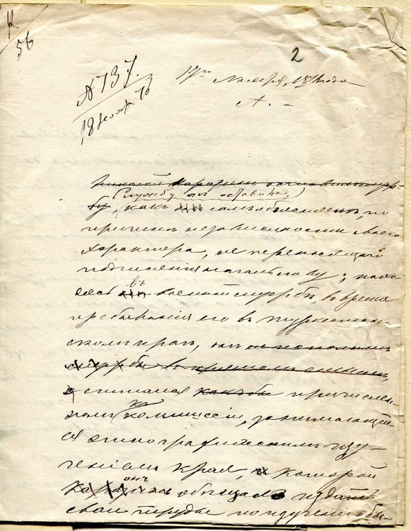 В настоящее время он (неразборчиво) высказывает весьма резкие осуждения правительству по поводу существующей будто бы враждебности правительства к деятельности Черняева. Н. Каразин сообща с Миллером, Сувориным и некотор(ыми). др(угими). лит(ераторами). одинакового направления (неразборчиво) издает брошюру, посвященную восхвалению деятельности Черняева и его сторонников»…