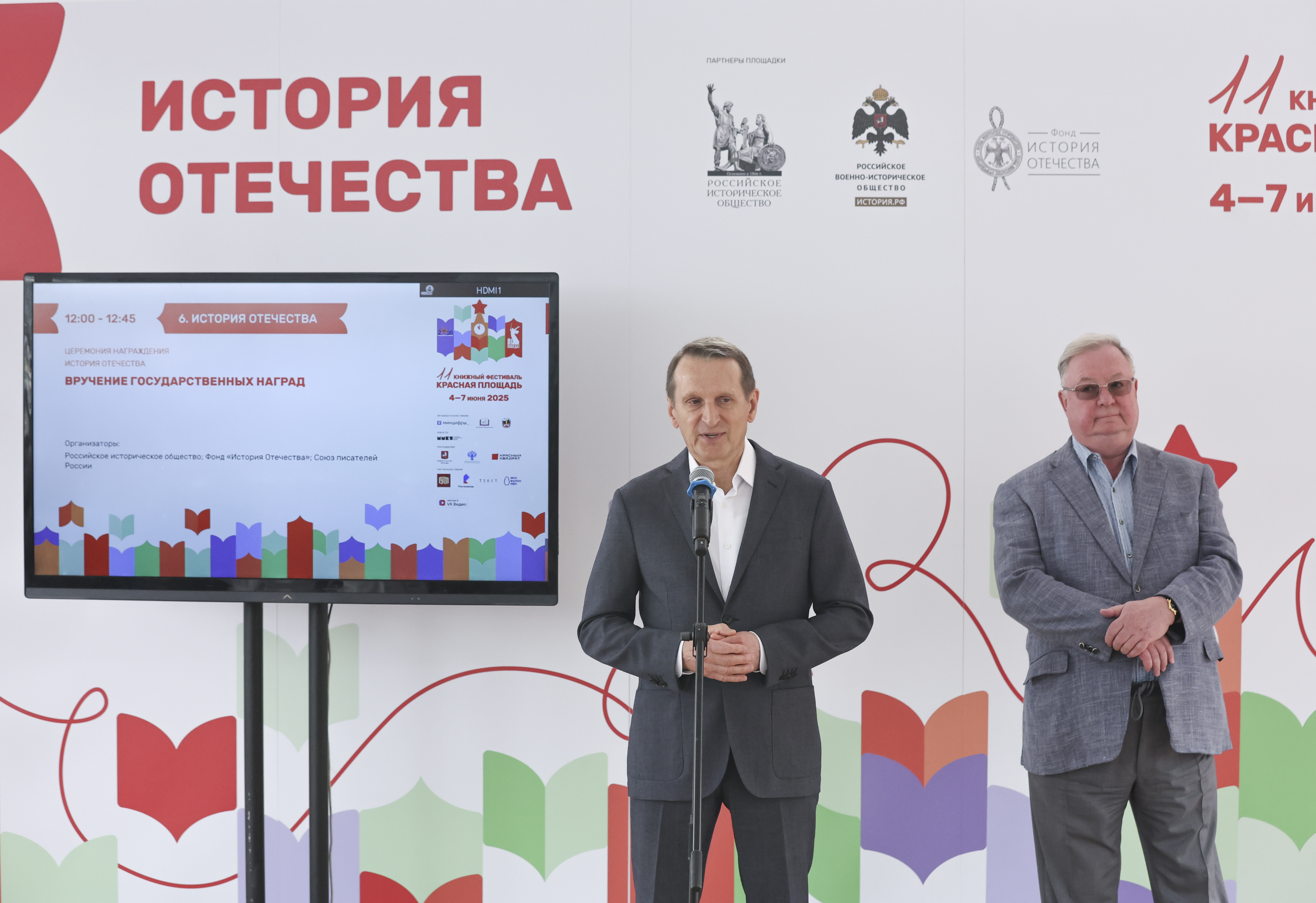 Участие в мероприятии приняли Председатель Российского исторического общества Сергей Нарышкин и Президент Российского книжного союза, член Попечительского совета фонда «История Отечества» Сергей Степашин.