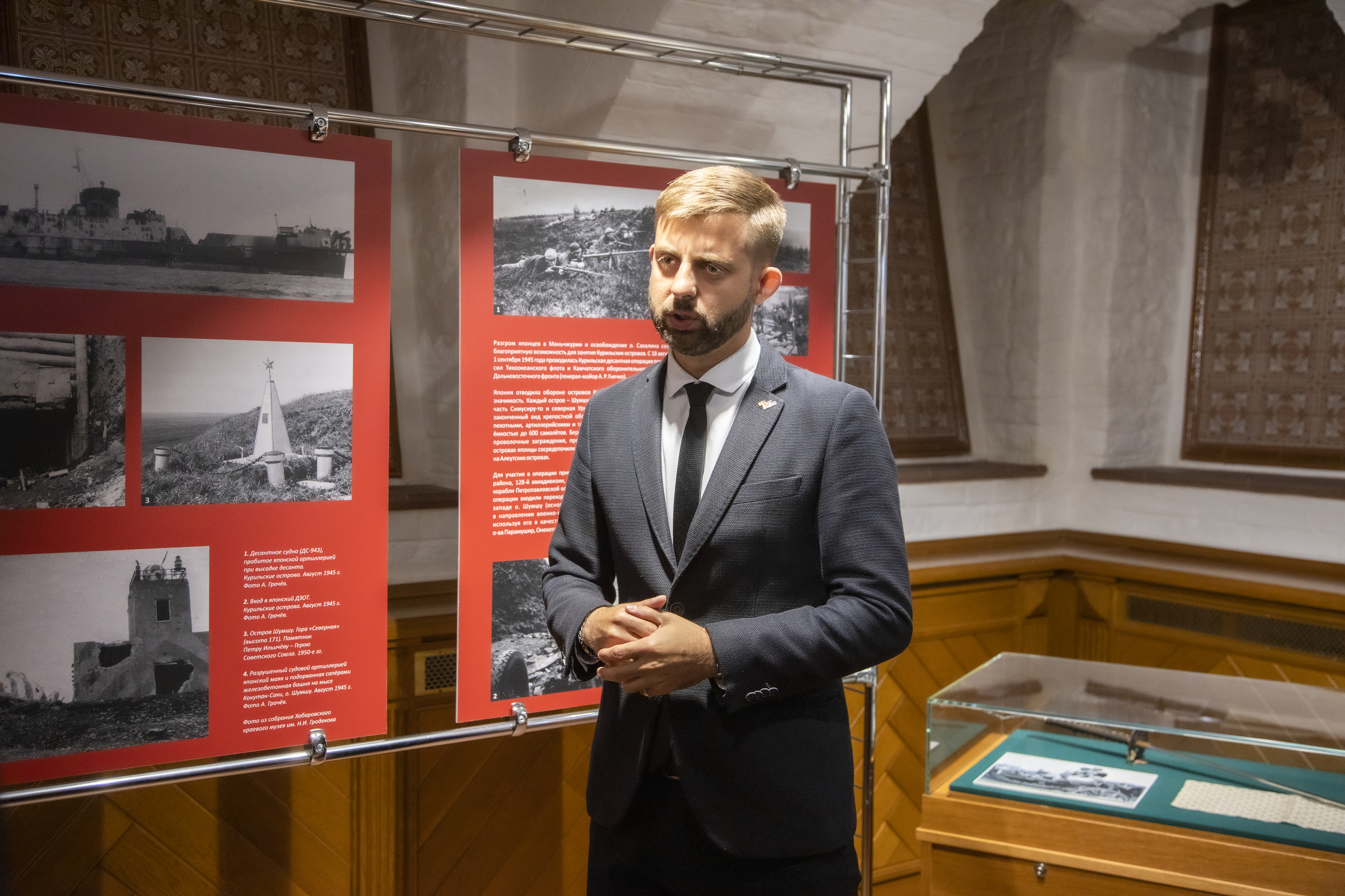 «Впервые для посетителей в одном экспозиционном пространстве открывается большой комплекс архивных документов, которые позволяют объективно осветить дипломатические переговоры о вступлении Советского Союза в войну с Японией, подготовку СССР военной операции на Дальнем Востоке, боевые действия Красной армии против японских войск, их сопротивление в Маньчжурии, в ходе знаменитых Южно-Сахалинской, Сэйсинской, Курильской десантных операций. Эти документы детально рассказывают об освобождении Китая, Северной Кореи, Сахалина, Курильских островов, о капитуляции Японии»,