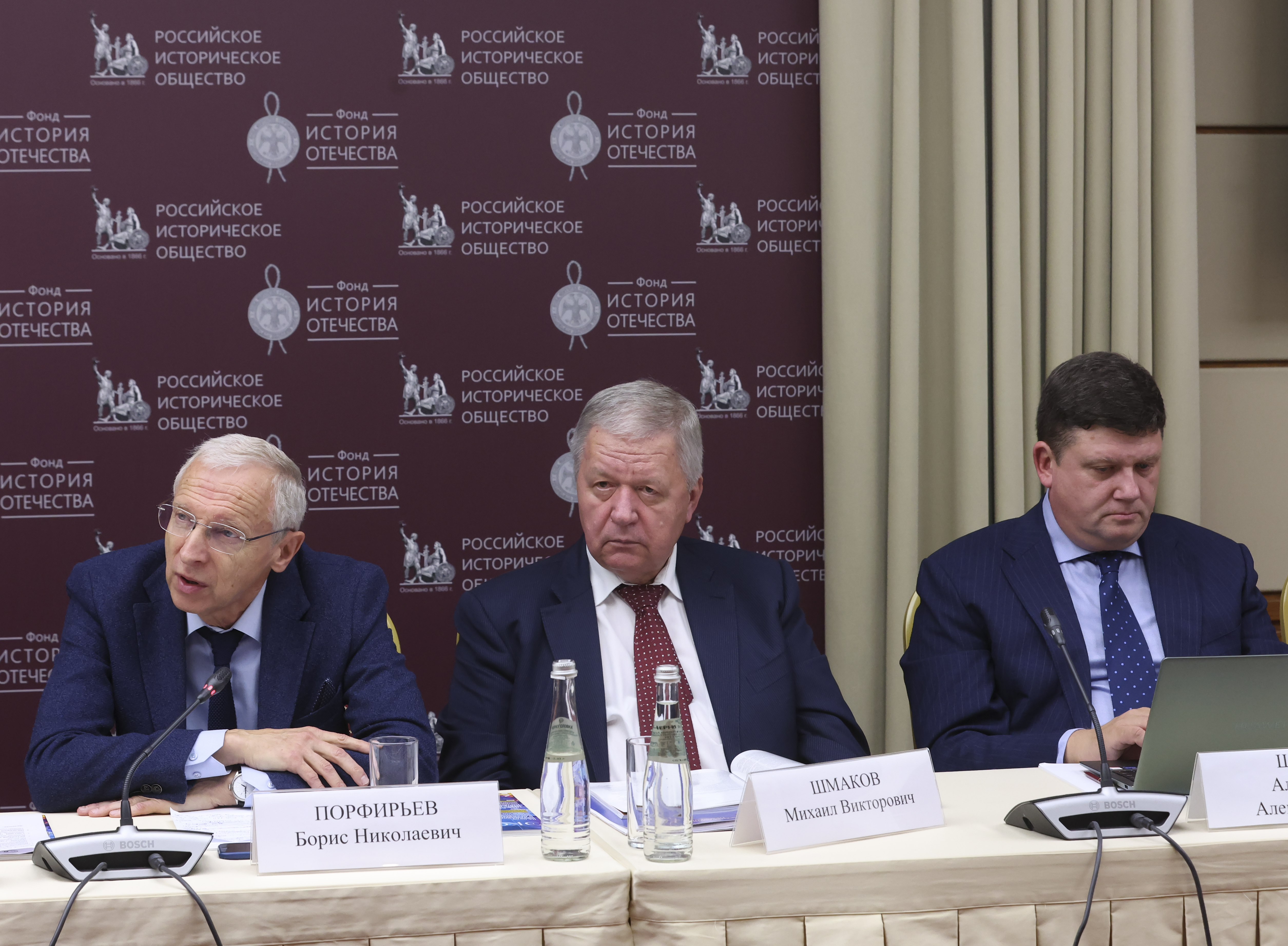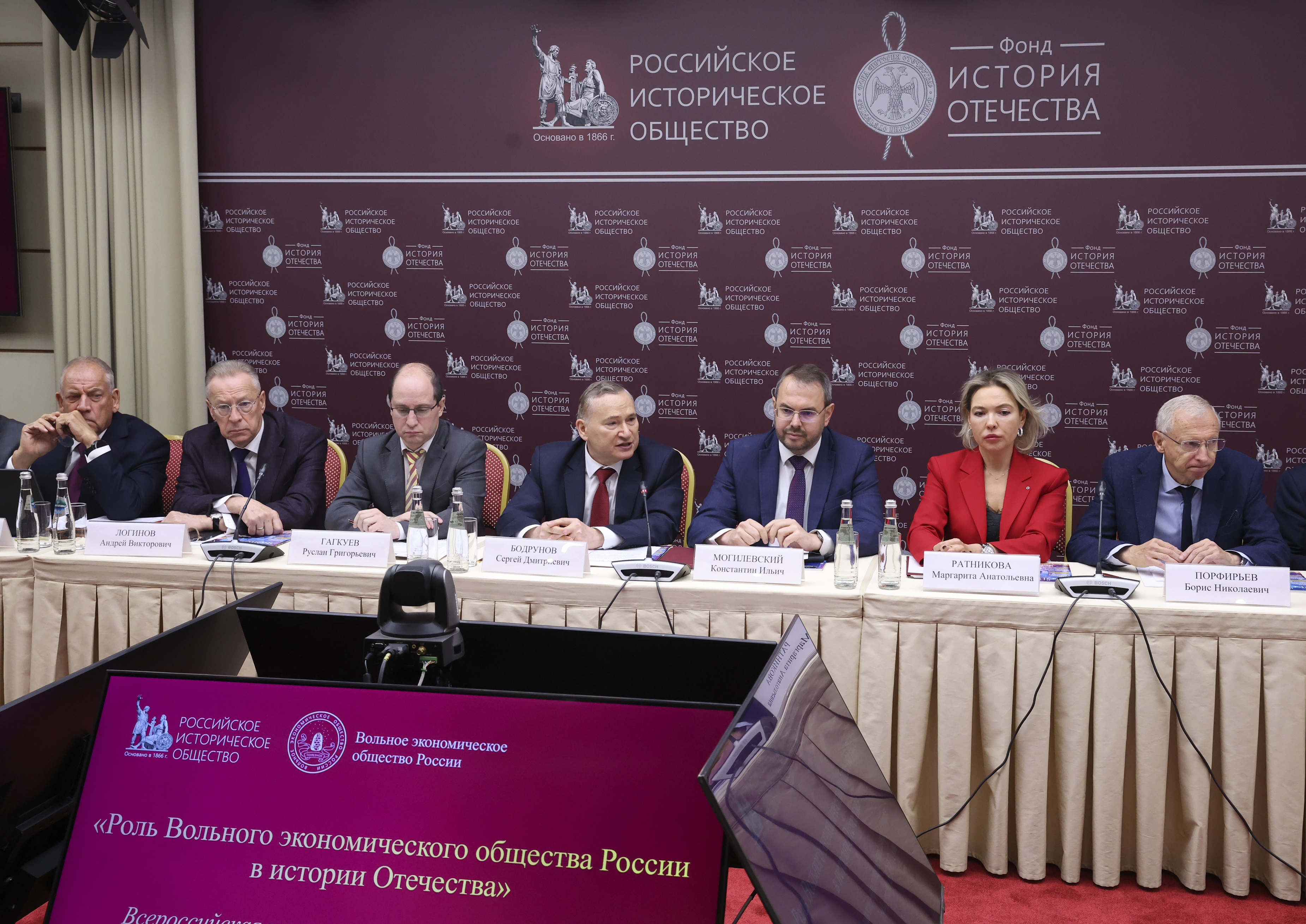 «За последние годы между Вольным экономическим и Российским историческим обществами, фондом “История Отечества” сложились крепкие партнёрские и по-настоящему дружеские отношения. Напомню, что в марте этого года они были подкреплены трёхсторонним соглашением о сотрудничестве. В основе нашего тесного взаимодействия лежит, конечно, стремление сохранять и преумножать традиции отечественной экономической мысли, извлекать из прошлого востребованные и в современности уроки, сохранять нашу общую историю. Важно, что эта работа уже приносит конкретные результаты, одним из которых является и наша сегодняшняя конференция. В начале этого года Вольное экономическое общество и фонд “История Отечества” впервые провели совместный конкурс историко-просветительских проектов. По его итогам финансовую поддержку получили четыре наиболее перспективных проекта по экономической истории».