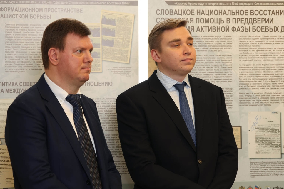 После завершения торжественной части для участников мероприятия была проведена экскурсия по выставке, в ходе которой гости познакомились с документальными материалами, фотохроникой и архивными свидетельствами, отражающими события восстания и вклад советских воинов в освобождение Словакии.